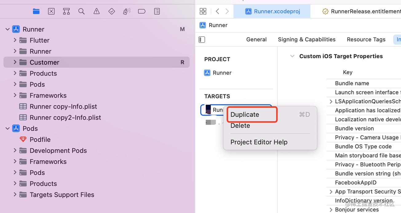 目前我们遇到如下问题,配置好后在flutter层执行flutter build ios --flavor Customer --release后,会导致xcode重新build项目,然后pod_Runner的动态依赖丢失,但是在xcode中执行又不会。