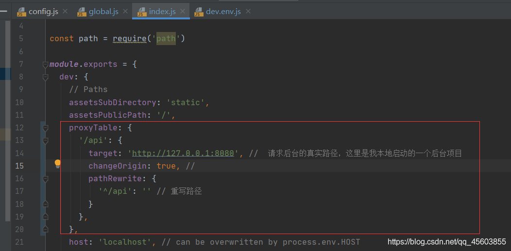 target: 'http://127.0.0.1:8080', // 请求后台的真实路径,这里是我本地启动的一个后台项目