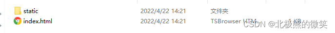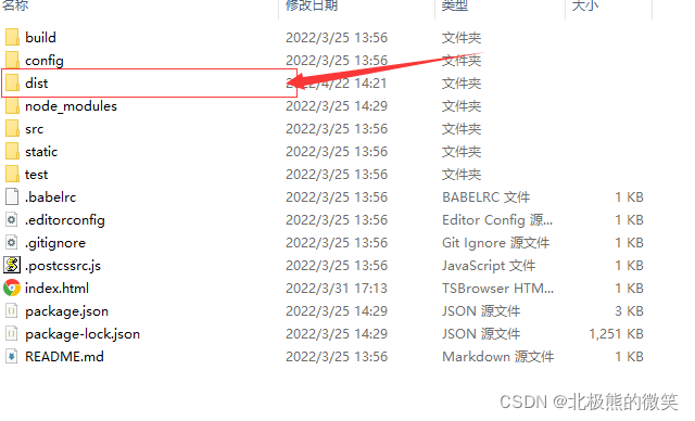 命令执行成功之后,项目目录下会生成一个dist文件夹 (里面包含:static文件夹和index.html文件)。--打包成功