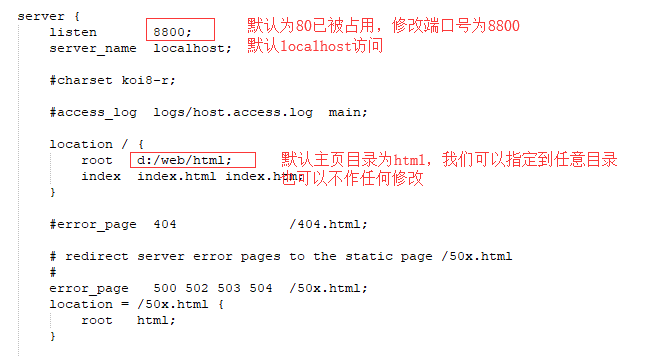 (6)修改配置文件,进入解压缩目录,找到nginx.conf配置文件并修改。(这个根据自己需要)