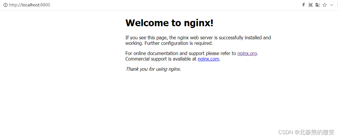 (9)打开浏览器访问刚才的域名及端口(我本地是:http://localhost:8800),出现欢迎页就说明部署成功了
