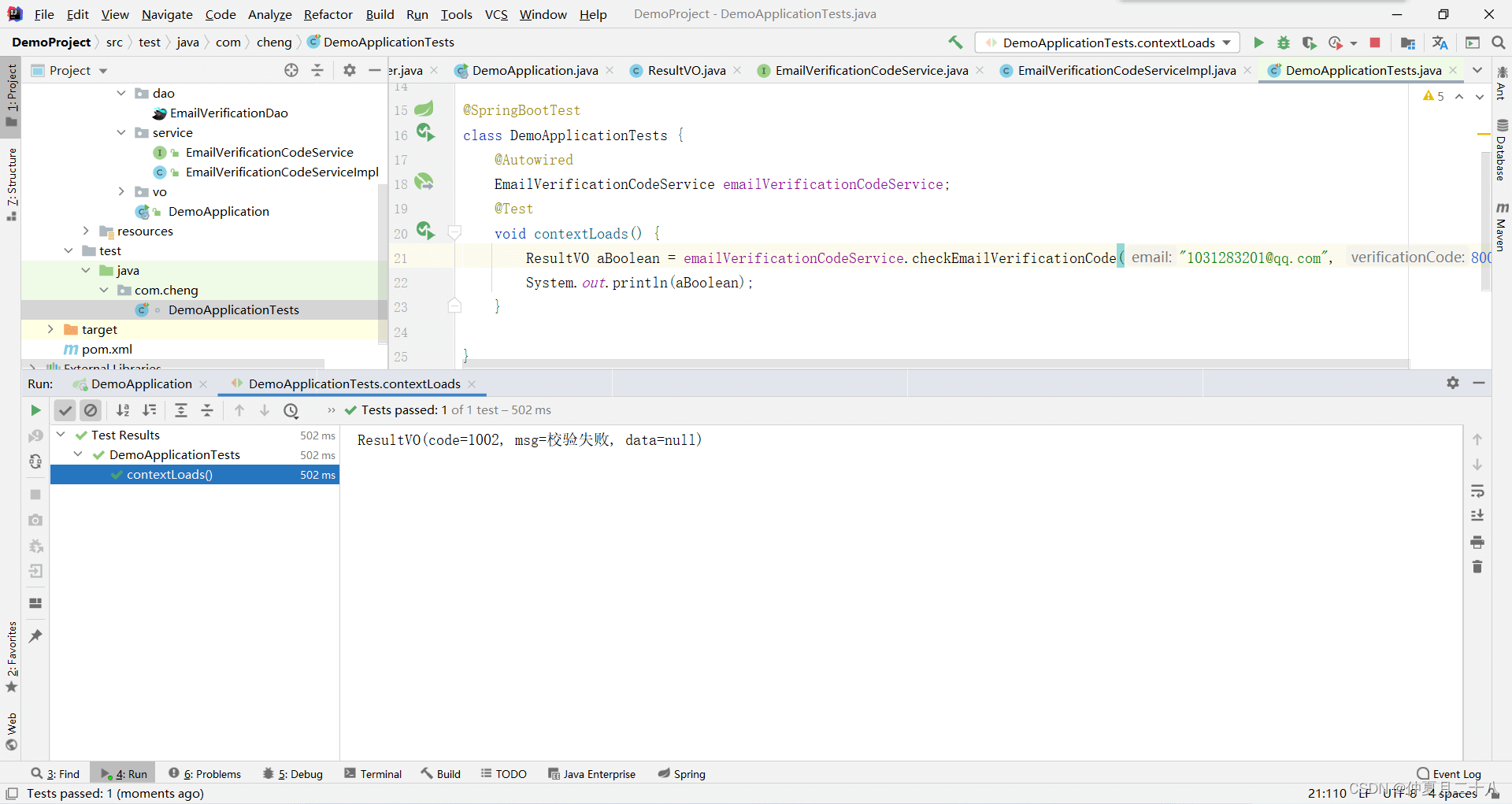 final ResultVO resultVO = emailVerificationCodeService.sendEmailVerificationCode("***7@qq.com");