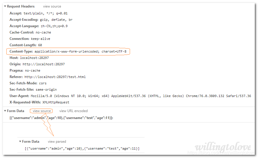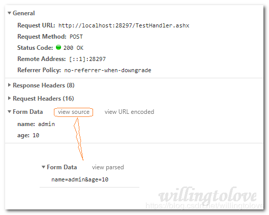 从上面的截图中可以看出,post请求,是将formdata中键值对用符号“&”相连,拼接成一个字符串,传递到服务端,服务端可以通过key来获取值,或从request的body中读取整个字符串;