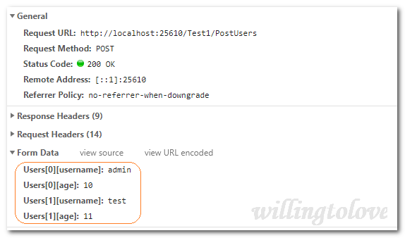 注:示例中服务端用的是 asp.net ApiController,如果使用普通的mvc controller,还有其他解决方案;