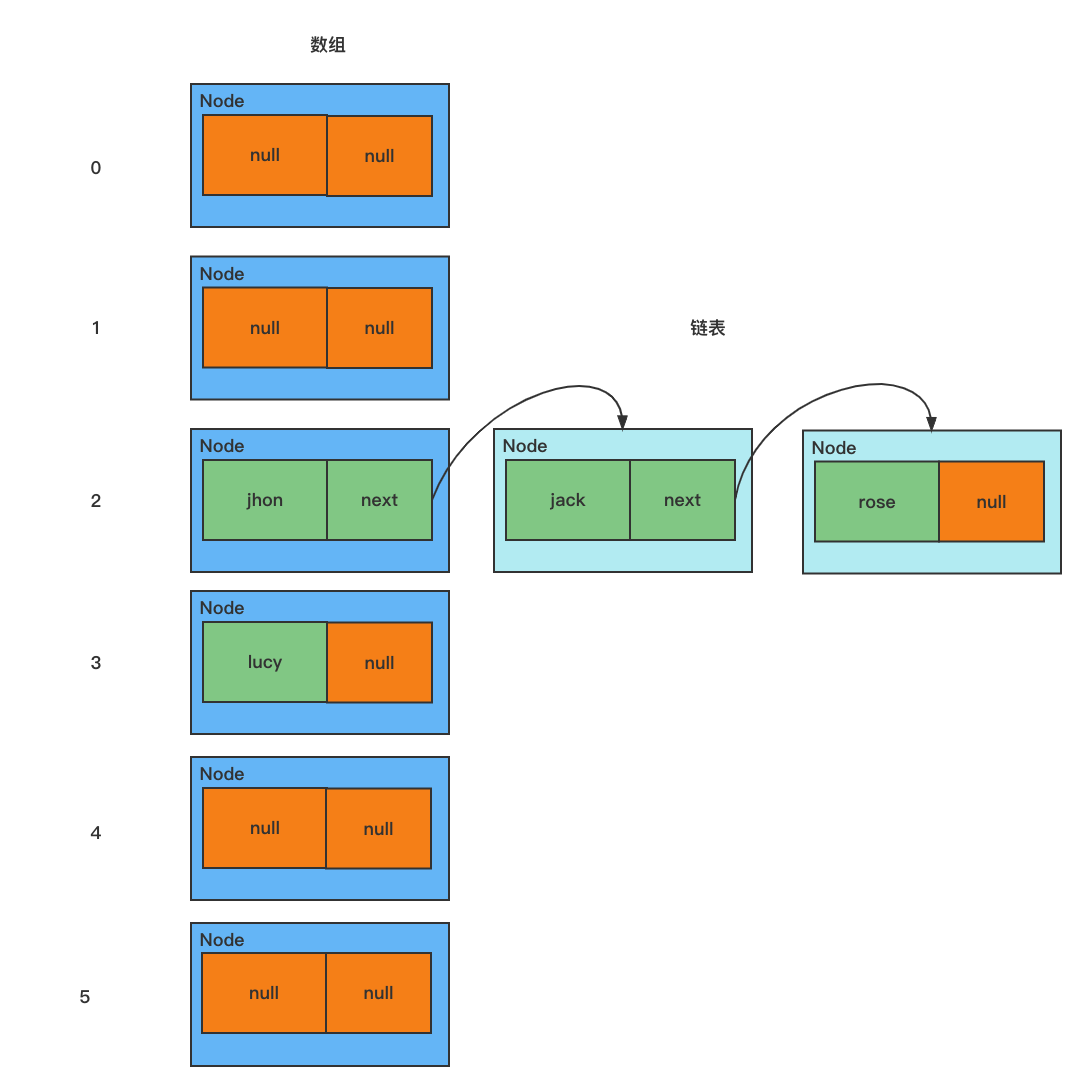 table[2] = jhon; // 把节点 john 放在数组索引为 2 的位置