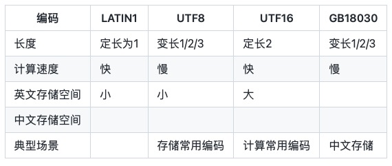 GB18030 变长字节编码,一个字符需要使用1个、2个或者3个byte表示。类似UTF8,中文只需要2个字符,表示中文更省字节大小,缺点是在国际上不通用。