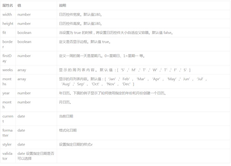 //可以使用$.fn.calendar.defaults 重写默认值对象。
