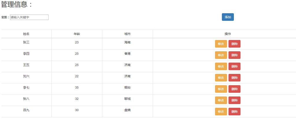 用AngularJS实现对表格的增删改查(仅限前端),具体代码:
