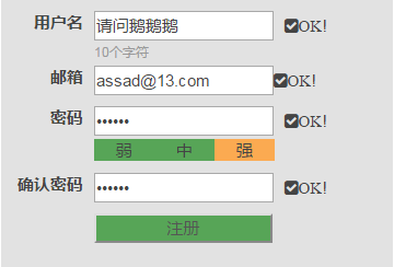 5.提交按钮只有在全部input验证通过后才有效,否则无效
