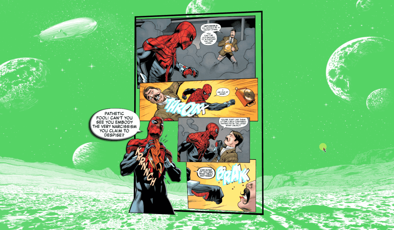 实现效果如下图所示:页面主要有背景图、漫画图片主体以及 Boom 爆炸背景图片构成,按住鼠标左键移动模型可以获得不同视图,让图片在视觉上有 3D 景深效果。