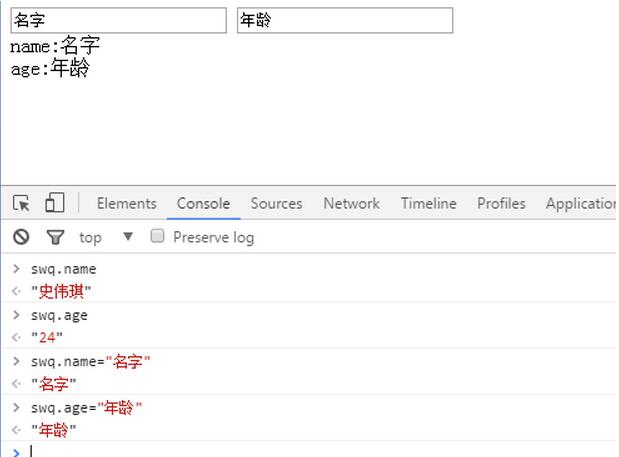 var swqNamesArray = ['name','age']; //存放订阅者标识容器,这边写死,实际上肯定需要动态获取