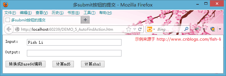 可能有人会说,如果有多个submit按钮,这种方法就不合适了,我要响应每个按钮,为它们指定不同的URL !