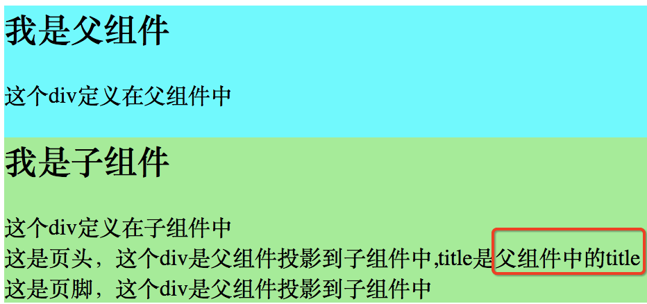 <div class="header">这是页头,这个div是父组件投影到子组件中,title是{{title}}</div>