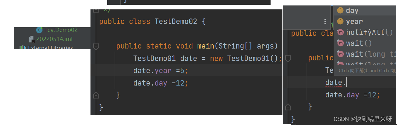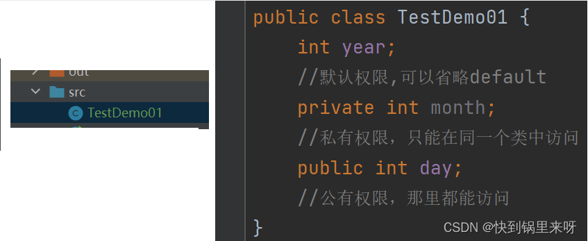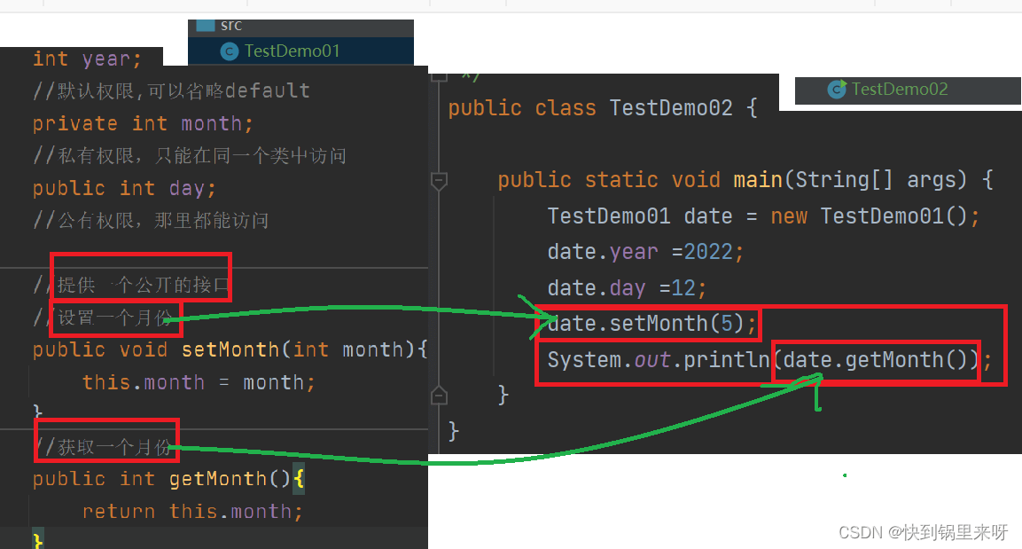 我们发现,找不到month,这是因为我们把它的访问权限写成了private,变成私有的了,别的类不能访问。这就是实现封装了,month只能在TestDemo01中使用。