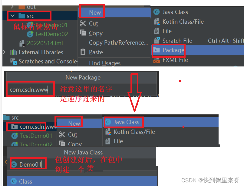 1. 包创建好后,在文件中,最上方都要有一句 package语句来说明在文件在哪个包中(idea会自动添加)