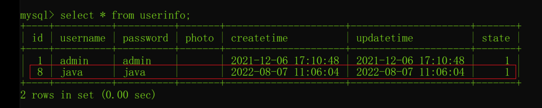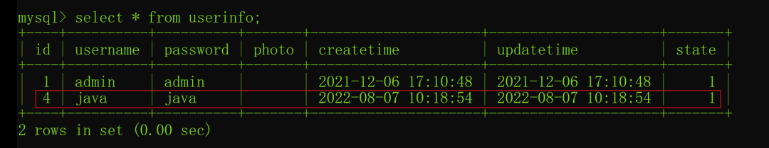 当程序出现运行时异常时,我们预期的结果是事务应该实现自动回滚,也就是添加用户失败,然而当我们查询数据库时,却发现事务并未执行回滚操作,数据库的数据如下图所示: