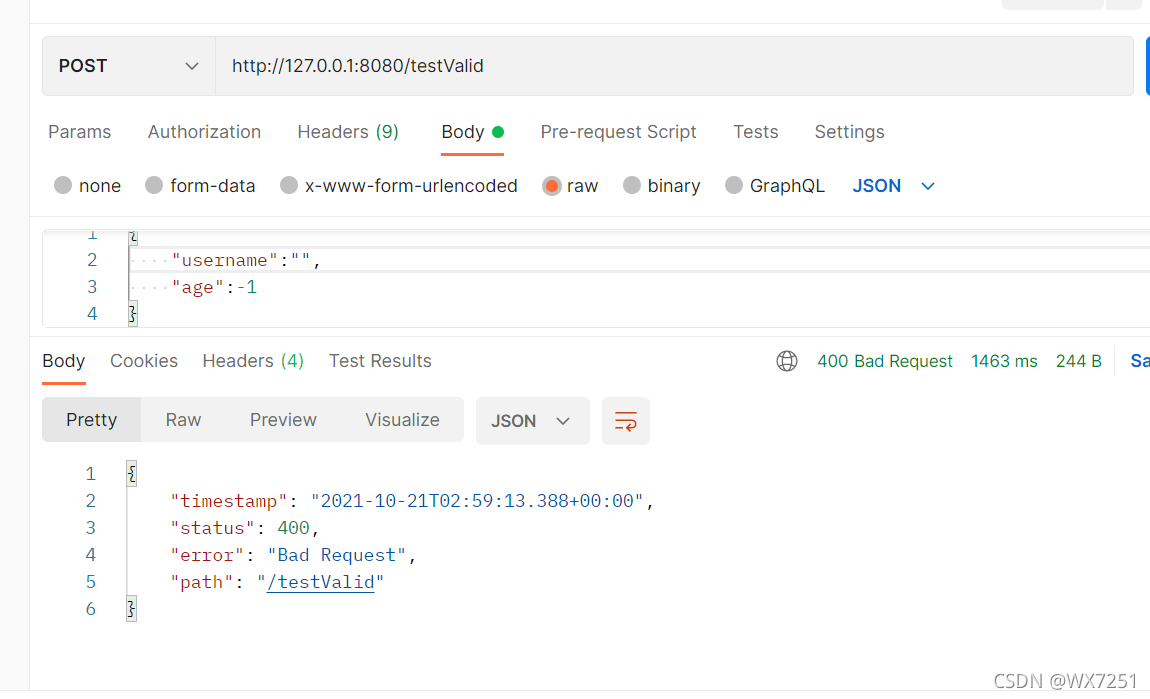 4.优雅捕获异常,这一步可以省略,但是请求时会直接返回,400的异常提示,不太优雅。