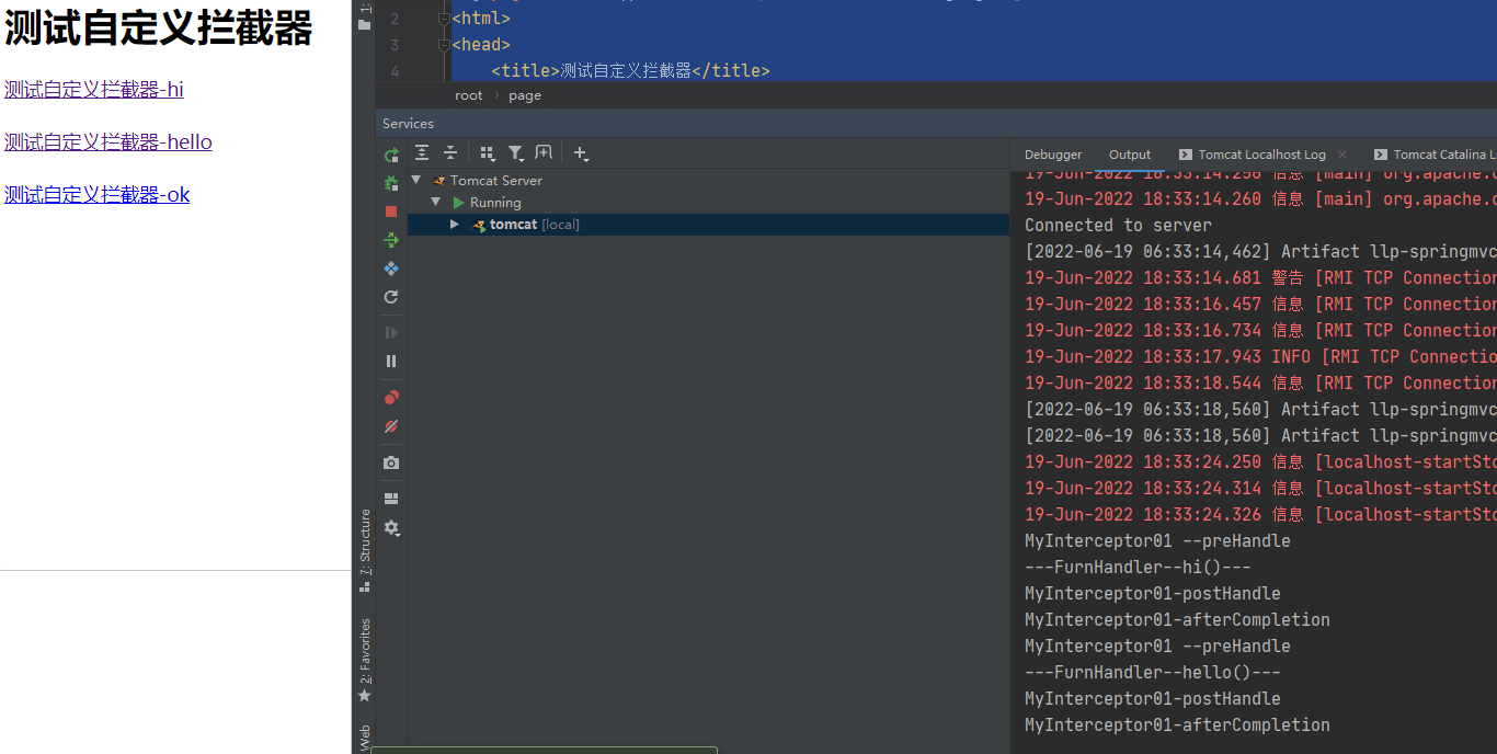 <h1>测试自定义拦截器</h1>