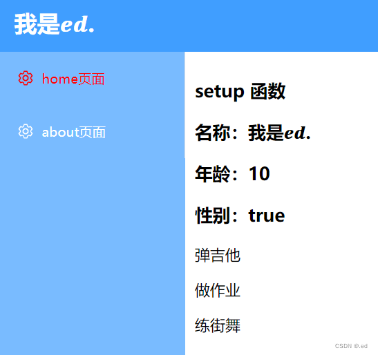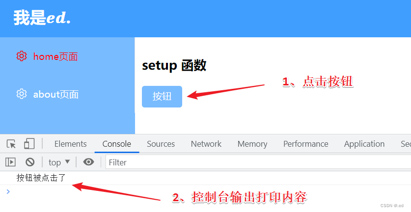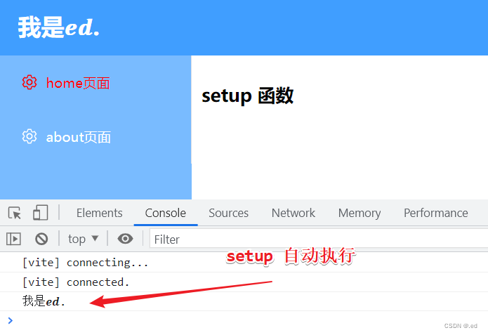 上边提到,setup 函数是页面打开之后自动执行的一个方法,当页面打开会自动执行 setup 函数当中的逻辑代码。