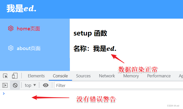 打开页面,可以看到我们输出打印的 我是𝒆𝒅. 输出在控制台。