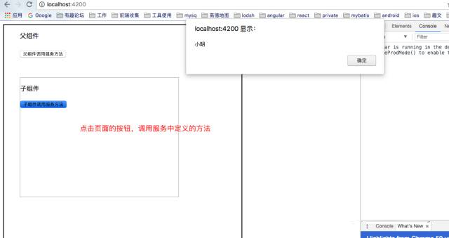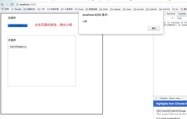 因为共享的是同一个ParentService服务实例,所以我们在子组件中也可以调用个ParentService服务的方法,代码同上面用一样