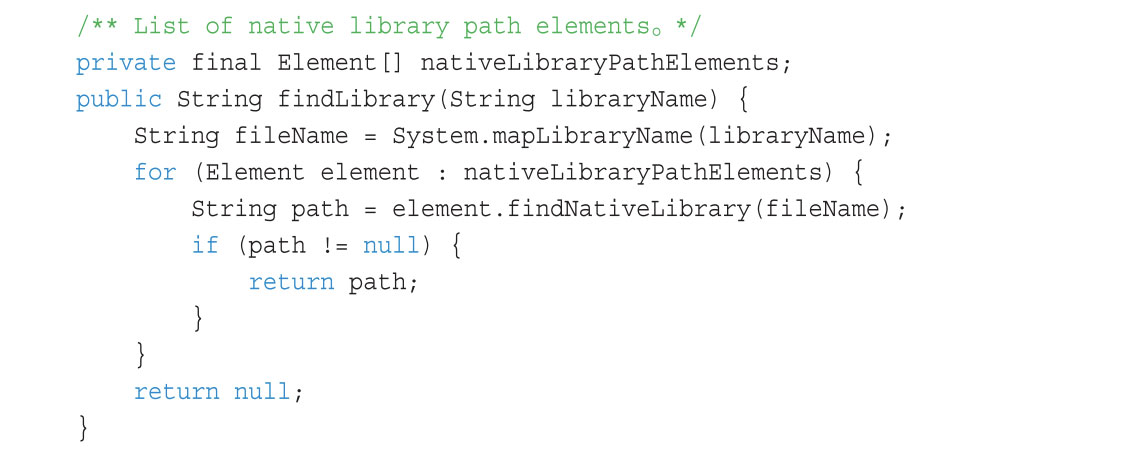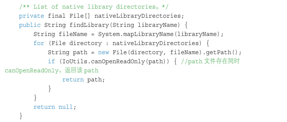 可以发现会遍历 nativeLibraryDirectories数组,如果找到了 loUtils.canOpenReadOnly (path)返回为 true, 那么就直接返回该 path, loUtils.canOpenReadOnly (path)返回为 true 的前提肯定是需要 path 表示的 so文件存 在的。那么我们可以采取类似类修复反射注入方式,只要把我们的补丁so库的路径插入到nativeLibraryDirectories数组的最前面就能够达到加载so库的时候是补丁 库而不是原来so库的目录,从而达到修复的目的。