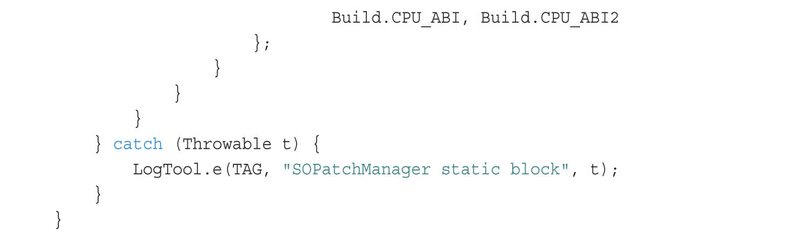实际上补丁 so也存在类似的问题,我们的补丁 so库文件放到补丁包的libs目录下面,libs目录和.dex文件和res资源文件一起打包成一个压缩文件作为最后的补丁包,libs目录可能也包含多种abis目录。所以我们需要选择手机最合适的 primaryCpuAbi,然后从libs目录下面选择这个primaryCpuAbi子目录插入到 nativeLibraryDirectories/nativeLibraryPathElements 数组中。所以怎么选择primaryCpuAbi是关键,来看下我们sdk具体的实现