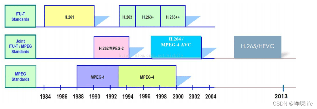 2、H264也叫:MPEG-4 AVC,全称是:H264/MPEG-4 AVC,2003年制定