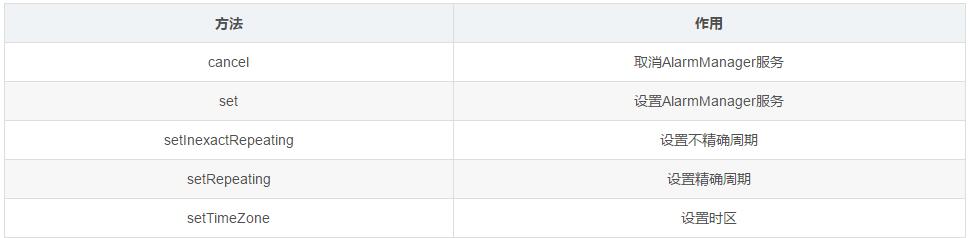 让我们来看一下AlarmManager都为我们提供了哪些方法,如下: