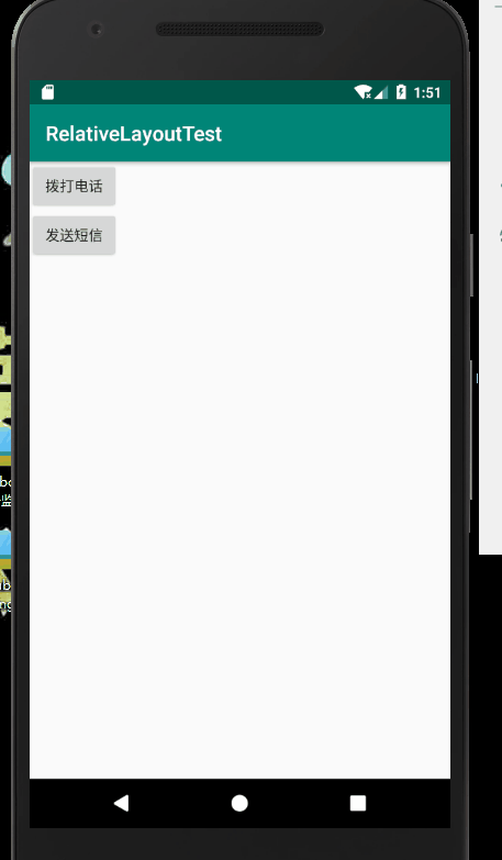 <?xml version="1.0" encoding="utf-8"?> <LinearLayout xmlns:android="http://schemas.android.com/apk/res/android" xmlns:app="http://schemas.android.com/apk/res-auto" xmlns:tools="http://schemas.android.com/tools" android:layout_width="match_parent" android:layout_height="match_parent" android:orientation="vertical" tools:context=".IntentActivity"> <Button android:id="@ id/call" android:text="拨打电话" android:layout_width="wrap_content" android:layout_height="wrap_content"/> <Button android:id="@ id/send" android:text="发送短信" android:layout_width="wrap_content" android:layout_height="wrap_content"/> </LinearLayout>