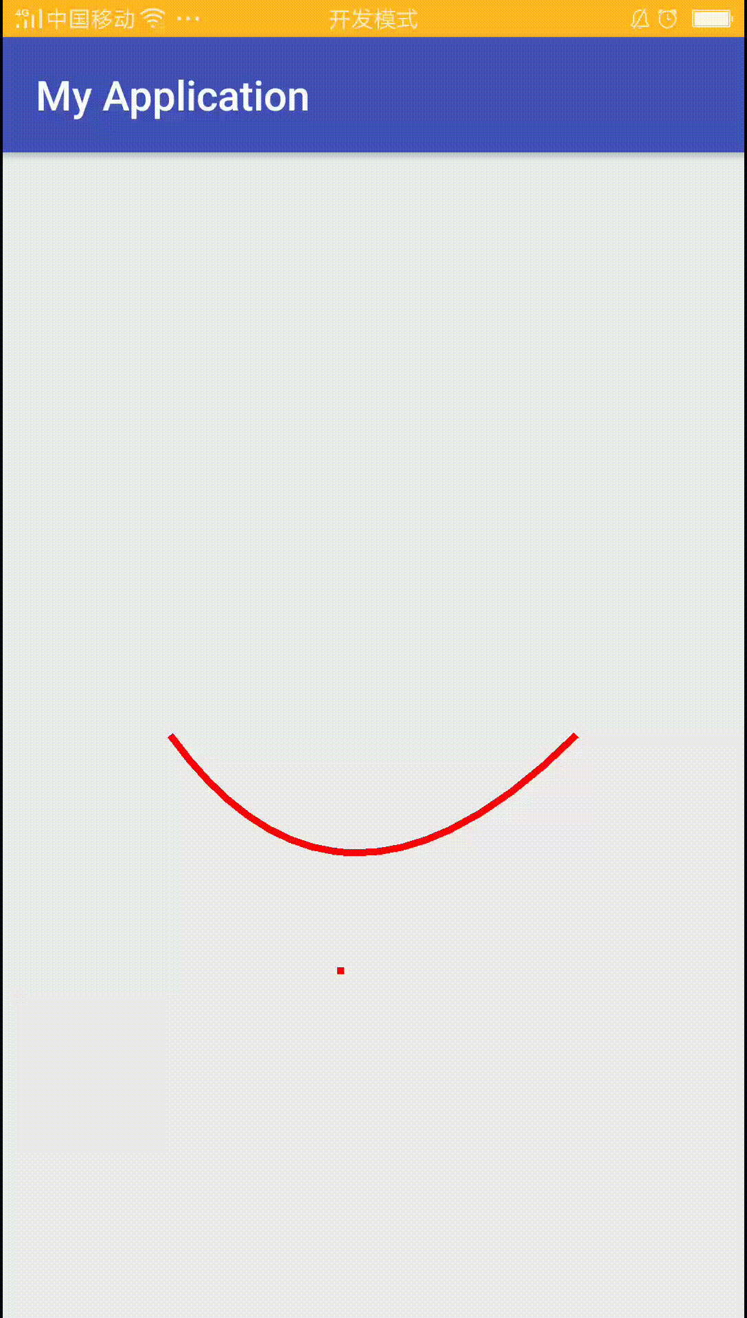 public class CurveView extends View{ private float mSupX; private float mSupY; private int mWidth; private int mHeight; private Paint mPaint; private Path mPath; public CurveView(Context context) { super(context); } public CurveView(Context context, AttributeSet attrs) { super(context, attrs, 0); mPaint = new Paint(); mPaint.setStyle(Paint.Style.STROKE); mPaint.setStrokeWidth(10); mPath = new Path(); } @Override protected void onMeasure(int widthMeasureSpec, int heightMeasureSpec) { int widthSize = MeasureSpec.getSize(widthMeasureSpec); int widthMode = MeasureSpec.getMode(widthMeasureSpec); int heightSize = MeasureSpec.getSize(heightMeasureSpec); int heightMode = MeasureSpec.getMode(heightMeasureSpec); if (widthMode == MeasureSpec.EXACTLY) { mWidth = widthSize; } if (heightMode == MeasureSpec.EXACTLY) { mHeight = heightSize; } setMeasuredDimension(mWidth, mHeight); } @Override protected void onDraw(Canvas canvas) { mPath.reset(); mPath.moveTo(mWidth / 5, mHeight / 2); //设置起点 mPath.quadTo(mSupX, mSupY, mWidth * 4 / 5, mHeight / 2); //设置辅助点和终点 canvas.drawPath(mPath, mPaint); canvas.drawPoint(mSupX, mSupY, mPaint); super.onDraw(canvas); } @Override public boolean onTouchEvent(MotionEvent event) { switch (event.getAction()){ case MotionEvent.ACTION_MOVE: mSupX = event.getX(); mSupY = event.getY(); invalidate(); } return true; } }
