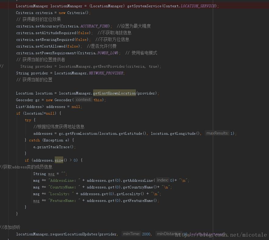 Android原生定位的代码网上已经很多了,就不贴出来。