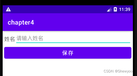<LinearLayout xmlns:android="http://schemas.android.com/apk/res/android" android:layout_width="match_parent" android:layout_height="match_parent" android:orientation="vertical" android:padding="5dp"> <LinearLayout android:layout_width="match_parent" android:layout_height="40dp" android:orientation="horizontal"> <TextView android:id="@ id/tv_name" android:layout_width="wrap_content" android:layout_height="match_parent" android:gravity="center" android:text="姓名" android:textSize="17sp"/> <EditText android:id="@ id/et_name" android:layout_width="0dp" android:layout_height="match_parent" android:layout_weight="1" android:hint="请输入姓名" android:inputType="text" android:textSize="17sp"/> </LinearLayout> <Button android:id="@ id/btn_save" android:layout_width="match_parent" android:layout_height="wrap_content" android:text="保存" android:textSize="17sp"/> </LinearLayout>