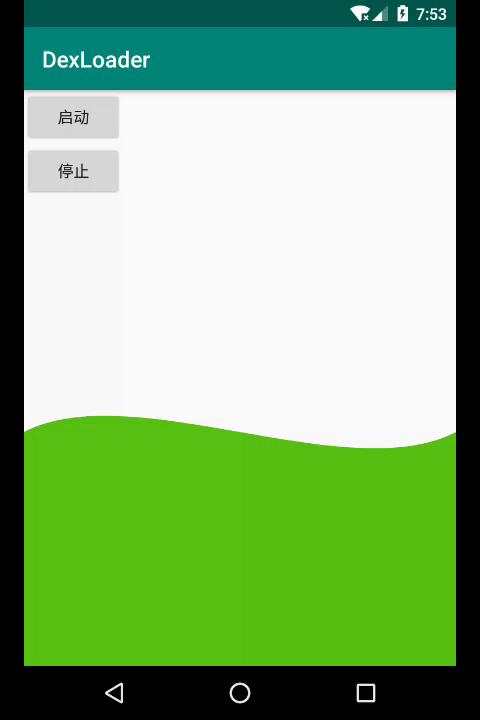 //这里用的kotlin //主线程刷新控件 val mHandler = object : Handler() { override fun handleMessage(msg: Message?) { waterRippleView.refreshView() } //开启动画,开线程,延时刷新period值,画布进行x方向平移 private fun progressAdd() { isAnimate = true Thread(Runnable { while (isAnimate) { Thread.sleep(100) mHandler.sendEmptyMessage(0) } }).start() } //停止动画 private fun progressReduce() { isAnimate = false }