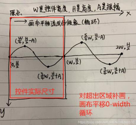//java编写 public class WaterRippleView extends View { private float mWidth; private float mHeight; //总周期为2s private int CIRCLE_PERIOD = 2000; //振幅,波纹高度 private float ampltitude = 100; //填充颜色 private int paintColor = 0xff57c011; //当前时间值,累加并循环 private int period = 0; private Paint paint; private Path path; public WaterRippleView(Context context) { this(context, null); } public WaterRippleView(Context context, @Nullable AttributeSet attrs) { this(context, attrs, 0); } public WaterRippleView(Context context, @Nullable AttributeSet attrs, int defStyleAttr) { super(context, attrs, defStyleAttr); paint = new Paint(); paint.setColor(paintColor); paint.setStyle(Paint.Style.FILL); paint.setAntiAlias(true); path = new Path(); } @Override protected void onSizeChanged(int w, int h, int oldw, int oldh) { super.onSizeChanged(w, h, oldw, oldh); mWidth = w; mHeight = h; } public void refreshView() { period = 100; if (period > CIRCLE_PERIOD) period %= CIRCLE_PERIOD; invalidate(); } @Override protected void onDraw(Canvas canvas) { super.onDraw(canvas); //周期性的移动画布 float offsetX = mWidth / CIRCLE_PERIOD * period; canvas.translate(-offsetX, 0); path.reset(); //第一个正弦曲线 path.moveTo(0, mHeight / 2); path.cubicTo(mWidth / 4, mHeight / 2 - ampltitude, mWidth * 3 / 4, mHeight / 2 ampltitude, mWidth, mHeight / 2); //第二个正弦曲线 path.cubicTo(mWidth * 5 / 4, mHeight / 2 - ampltitude, mWidth * 7 / 4, mHeight / 2 ampltitude, 2 * mWidth, mHeight / 2); //形成闭合路径 path.lineTo(2 * mWidth, mHeight); path.lineTo(0, mHeight); path.lineTo(0, mHeight / 2); canvas.drawPath(path, paint); } }