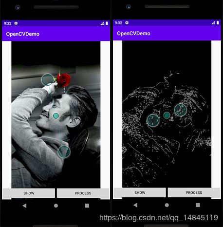 package com.example.opencvdemo; import androidx.appcompat.app.AppCompatActivity; import android.graphics.Bitmap; import android.graphics.BitmapFactory; import android.os.Bundle; import android.view.View; import android.widget.ImageView; import android.widget.TextView; public class MainActivity extends AppCompatActivity implements View.OnClickListener{ // Used to load the 'native-lib' library on application startup. static { System.loadLibrary("native-lib"); } @Override protected void onCreate(Bundle savedInstanceState) { super.onCreate(savedInstanceState); setContentView(R.layout.activity_main); imageView = findViewById(R.id.imageView); findViewById(R.id.show).setOnClickListener(this); findViewById(R.id.process).setOnClickListener(this); } /** * A native method that is implemented by the 'native-lib' native library, * which is packaged with this application. */ //获得Canny边缘 public native void getEdge(Object bitmap); private ImageView imageView; @Override public void onClick(View v) { if (v.getId() == R.id.show) { Bitmap bitmap = BitmapFactory.decodeResource(getResources(), R.drawable.test); imageView.setImageBitmap(bitmap); } else { Bitmap bitmap = BitmapFactory.decodeResource(getResources(), R.drawable.test); getEdge(bitmap); imageView.setImageBitmap(bitmap); } } }