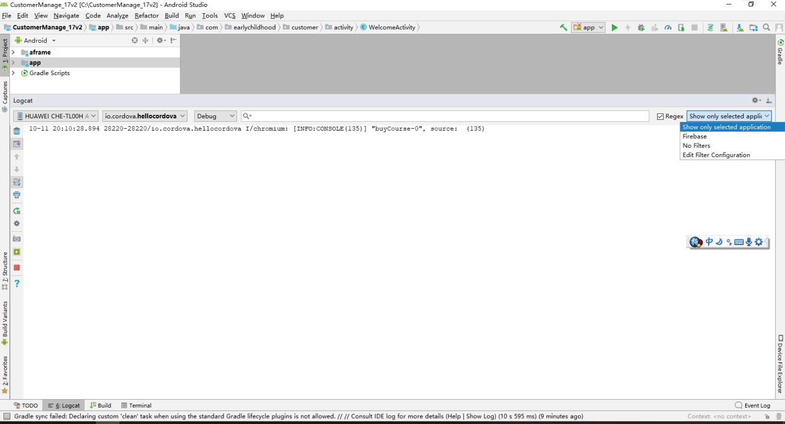 如何阻止自动出现的各种滚动信息,只显示我正在开发工程的调试信息?其实非常简单,只要对logcat后面的"Regex"选项,选择一下就可以了!