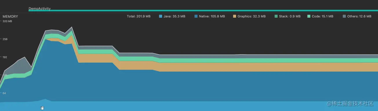运行APP可以明显看出页面卡顿来几秒后才显示,内存使用情况如下: