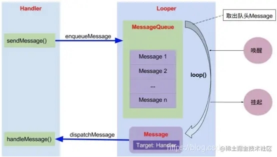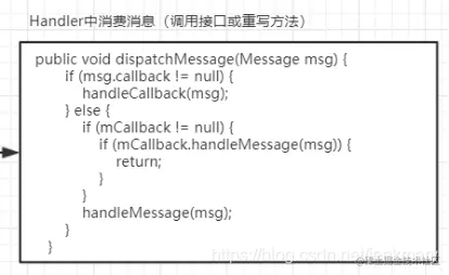 hander发送消息的时候,调用sendMessage方法,handler种会讲消息放到全局的消息队列中queue.enqueueMessage(msg, uptimeMillis)
