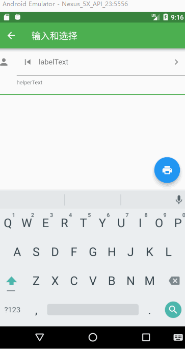 - labelText:一个提示文字。输入框获取焦点/输入框有内容 会移动到左上角,否则在输入框内,labelTex的位置.