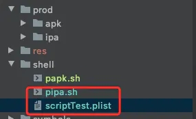1、shell 目录存放脚本和plist文件, pipa.sh 是苹果脚本,