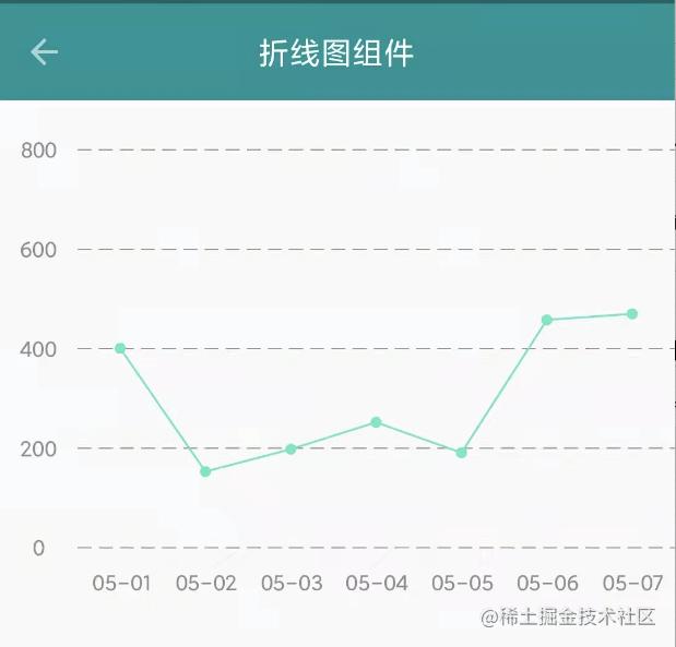 private fun initView() { val options = binding.chart.getOptions() //X轴 val xAxisOptions = options.xAxisOptions xAxisOptions.isEnableLine = false xAxisOptions.textColor = Color.parseColor("#999999") xAxisOptions.textSize = dpToPx(12) xAxisOptions.textMarginTop = dpToPx(12).toInt() xAxisOptions.textMarginBottom = dpToPx(12).toInt() xAxisOptions.isEnableGrid = false xAxisOptions.isEnableRuler = false //Y轴 val yAxisOptions = options.yAxisOptions yAxisOptions.isEnableLine = false yAxisOptions.textColor = Color.parseColor("#999999") yAxisOptions.textSize = dpToPx(12) yAxisOptions.textMarginLeft = dpToPx(12).toInt() yAxisOptions.textMarginRight = dpToPx(12).toInt() yAxisOptions.gridColor = Color.parseColor("#999999") yAxisOptions.gridWidth = dpToPx(0.5f) val dashLength = dpToPx(8f) yAxisOptions.gridPathEffect = DashPathEffect(floatArrayOf(dashLength, dashLength / 2), 0f) yAxisOptions.isEnableRuler = false //数据 val dataOptions = options.dataOptions dataOptions.pathColor = Color.parseColor("#79EBCF") dataOptions.pathWidth = dpToPx(1f) dataOptions.circleColor = Color.parseColor("#79EBCF") dataOptions.circleRadius = dpToPx(3f) binding.chart.setOnClickListener { initChartData() } binding.toolbar.setLeftClick { finish() } } private fun initChartData() { val random = 1000 val list = mutableListOf<LineChart.ChartBean>() list.add(LineChart.ChartBean("05-01", Random.nextInt(random))) list.add(LineChart.ChartBean("05-02", Random.nextInt(random))) list.add(LineChart.ChartBean("05-03", Random.nextInt(random))) list.add(LineChart.ChartBean("05-04", Random.nextInt(random))) list.add(LineChart.ChartBean("05-05", Random.nextInt(random))) list.add(LineChart.ChartBean("05-06", Random.nextInt(random))) list.add(LineChart.ChartBean("05-07", Random.nextInt(random))) binding.chart.setData(list) //文本 val text = list.joinToString("\n") { "x : ${it.xAxis} y:${it.yAxis}" } binding.value.text = text }