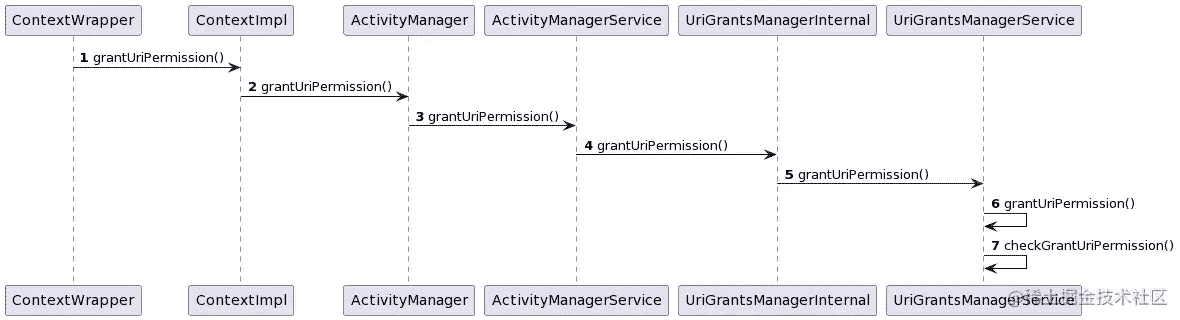 最终调用的是UriGrantsManagerService$checkGrantUriPermission()