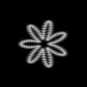 这段代码处于fragment shader中,意味着屏幕上每个点都会进行上述的算法。具体如下,遍历贴图中该点周围的点(上面的代码中为距离该点为20单位的圆上的点),把周围点中最亮的作为该点的颜色。 上面的贴图有点特殊,只有一个点是白色,其余点都是黑色的。那么只有距离该点正好为20单位的点才会变成亮色,其余的点都是黑色,如上图的结果。一句话总结上面算法的效果:贴图中的每一个“相对亮点”的周围都会产生“相对亮的特定图形”,图形的亮度取决于该点的亮度,越亮越明显。效果可以参考文末的图片。