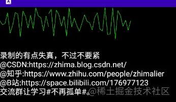 class ECGSurfaceViewKotlin(context: Context?, attrs: AttributeSet?) : SurfaceView(context, attrs), SurfaceHolder.Callback { //简单模拟一下数据 var ecgDatas: MutableList<Int> = ArrayList() //矩阵 画布 画笔 颜色 private var rect: Rect? = null private var mCanvas: Canvas? = null //画波形的画笔 private var mPaint: Paint? = null private val line_color = "#01FC00" //画笔默认是绿色的 private val wave_speed = 30 //定义波速:30mm/s private val sleepTime = 8 //每次锁屏的时间间距,单位ms 连线的时间长度,,如果大则会卡顿效果 var surfaceHolder: SurfaceHolder? = null private var isCanRun = true private var mStartX = 0 private var mStartY = 0 private val drawRunnable = Runnable { while (isCanRun) { //在这获取改view的宽度 如果mStartX超过则归位 这样实现反复从头画,我这800只是简单表示下效果 if (mStartX > 800) { mStartX = 0 } //绘制区域不断向右变化 rect!![mStartX, 0, mStartX 16] = 300 mCanvas = surfaceHolder!!.lockCanvas(rect) //提交绘制区域 if (mCanvas == null) return@Runnable //很重要,如果反复从头绘制,会覆盖上一次的绘制 mCanvas!!.drawColor(Color.TRANSPARENT, PorterDuff.Mode.CLEAR) if (ecgDatas.size > 0) { mCanvas!!.drawLine(mStartX.toFloat(), mStartY.toFloat(), (mStartX 16).toFloat(), ecgDatas[0].toFloat(), mPaint) //这个点的重点是下一个点的起点 mStartX = mStartX 16 mStartY = ecgDatas[0] ecgDatas.removeAt(0) } else { initData() } surfaceHolder!!.unlockCanvasAndPost(mCanvas!!) //这种方式把上次绘制的遮盖了 因此出现了断点 } } init { surfaceHolder = this.holder //获取holder surfaceHolder!!.addCallback(this) rect = Rect() //绘制矩阵内 mPaint = Paint() mPaint!!.setColor(Color.parseColor(line_color)) //画笔颜色 mPaint!!.setAntiAlias(true) //抗锯齿 mPaint!!.setStrokeWidth(2f) initData() } private fun initData() { ecgDatas.clear() for (i in 0..199) { ecgDatas.add((Math.random() * 200).toInt()) } mStartY = ecgDatas[0] } override fun surfaceCreated(holder: SurfaceHolder?) { Thread(drawRunnable).start() } override fun surfaceChanged(holder: SurfaceHolder?, format: Int, width: Int, height: Int) { } override fun surfaceDestroyed(holder: SurfaceHolder?) { isCanRun = false } }