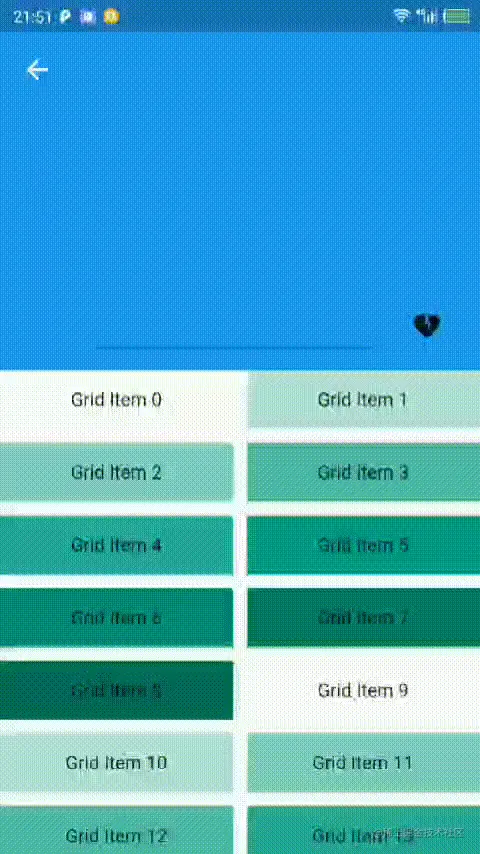 在floating=true和pinned=false 这两个组合参数的模式下,SliverAppBar表现为:列表向上滑动时随列表向上滑动直至消失。