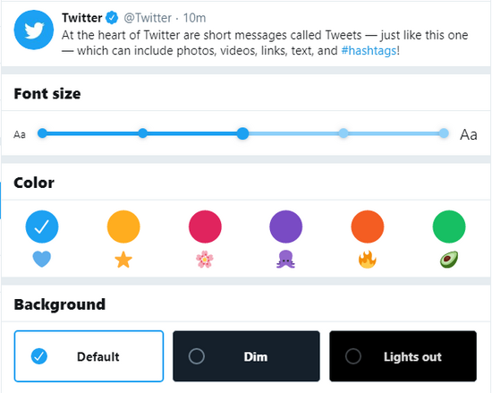 例如,下面是在 Twitter 的“显示设置”下找到的颜色主题选项。