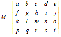颜色矩阵M是一个5*4的矩阵,在Android中,颜色矩阵M是以一维数组m=[a,b,c,d,e,f,g,h,i,j,k,l,m,n,o,p,q,r,s,t]的方式进行存储的。如下图所示: