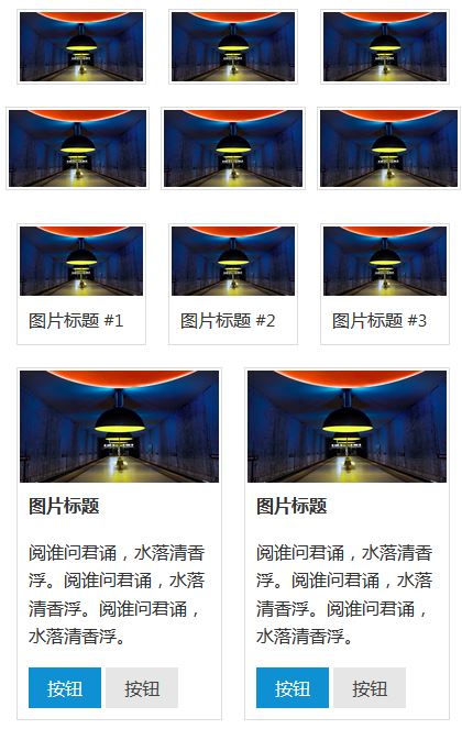 <!doctype html> <html class="no-js"> <head> <meta charset="utf-8"> <meta http-equiv="X-UA-Compatible" content="IE=edge"> <meta name="description" content=""> <meta name="keywords" content=""> <meta name="viewport" content="width=device-width, initial-scale=1"> <title>缩略图</title> <meta name="renderer" content="webkit"> <meta http-equiv="Cache-Control" content="no-siteapp"/> <link rel="icon" type="image/png" href="assets/i/favicon.png"> <meta name="mobile-web-app-capable" content="yes"> <link rel="icon" sizes="192x192" href="assets/i/app-icon72x72@2x.png"> <meta name="apple-mobile-web-app-capable" content="yes"> <meta name="apple-mobile-web-app-status-bar-style" content="black"> <meta name="apple-mobile-web-app-title" content="Amaze UI"/> <link rel="apple-touch-icon-precomposed" href="assets/i/app-icon72x72@2x.png"> <meta name="msapplication-TileImage" content="assets/i/app-icon72x72@2x.png"> <meta name="msapplication-TileColor" content="#0e90d2"> <link rel="stylesheet" href="assets/css/amazeui.min.css"> </head> <body style="margin: 10px;"> <!--结合网格使用--> <div class="am-g"> <div class="am-u-sm-4"> <img class="am-thumbnail" src="img/bing.jpg" alt=""/> </div> <div class="am-u-sm-4"> <a href="#" class="am-thumbnail"> <img src="img/bing.jpg" alt=""/> </a> </div> <div class="am-u-sm-4"> <figure class="am-thumbnail"> <img src="img/bing.jpg" alt=""/> </figure> </div> </div> <!--结合 AVG Grid 使用--> <ul class="am-avg-sm-3 am-thumbnails"> <li> <img class="am-thumbnail" src="img/bing.jpg" alt=""/> </li> <li> <a href="#" class="am-thumbnail"> <img src="img/bing.jpg" alt=""/> </a> </li> <li> <figure class="am-thumbnail"> <img src="img/bing.jpg" alt=""/> </figure> </li> </ul> <!--标题--> <div class="am-g"> <div class="am-u-sm-4"> <div class="am-thumbnail"> <img src="img/bing.jpg" alt=""/> <h3 class="am-thumbnail-caption">图片标题 #1</h3> </div> </div> <div class="am-u-sm-4"> <a href="#" class="am-thumbnail"> <img src="img/bing.jpg" alt=""/> <figcaption class="am-thumbnail-caption">图片标题 #2</figcaption> </a> </div> <div class="am-u-sm-4"> <figure class="am-thumbnail"> <img src="img/bing.jpg" alt=""/> <figcaption class="am-thumbnail-caption">图片标题 #3</figcaption> </figure> </div> </div> <!--图文混排--> <div class="am-g"> <div class="am-u-sm-6"> <div class="am-thumbnail"> <img src="img/bing.jpg" alt=""/> <div class="am-thumbnail-caption"> <h3>图片标题</h3> <p>阅谁问君诵,水落清香浮。阅谁问君诵,水落清香浮。阅谁问君诵,水落清香浮。</p> <p> <button class="am-btn am-btn-primary">按钮</button> <button class="am-btn am-btn-default">按钮</button> </p> </div> </div> </div> <div class="am-u-sm-6"> <div class="am-thumbnail"> <img src="img/bing.jpg" alt=""/> <div class="am-thumbnail-caption"> <h3>图片标题</h3> <p>阅谁问君诵,水落清香浮。阅谁问君诵,水落清香浮。阅谁问君诵,水落清香浮。</p> <p> <button class="am-btn am-btn-primary">按钮</button> <button class="am-btn am-btn-default">按钮</button> </p> </div> </div> </div> </div> <!--[if (gte IE 9)|!(IE)]><!--> <script src="assets/js/jquery.min.js"></script> <!--<![endif]--> <!--[if lte IE 8 ]> <script src="assets/ie8/jquery.min.js"></script> <script src="assets/ie8/modernizr.js"></script> <script src="assets/js/amazeui.ie8polyfill.min.js"></script> <![endif]--> <script src="assets/js/amazeui.min.js"></script> </body> </html>