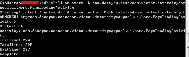 adb shell am start -W com.dateyou.test/com.datayou.test.ui.home.PageLoadingActivity
